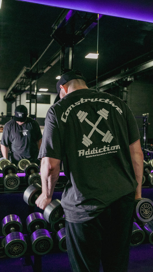 Constructive Addiction. Retro gym apparel. Habits that become a lifestyle